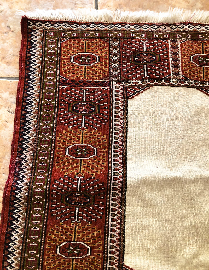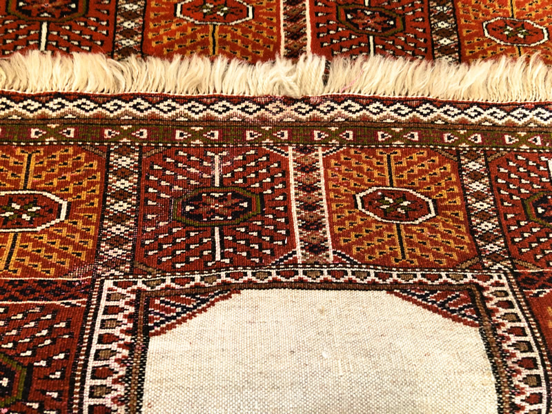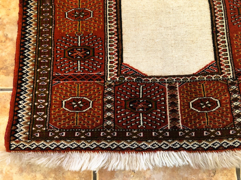 Good condition. Strings (fringed) on width of rug. Suitable for framing and putting pictures or certificates in the centre.