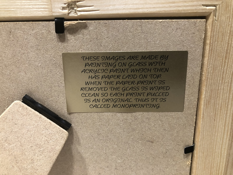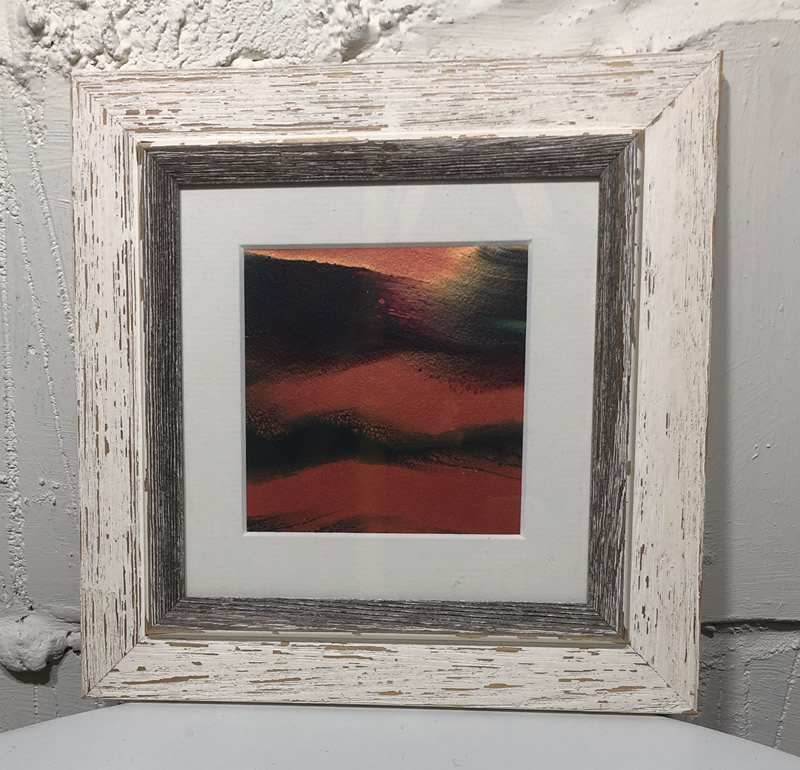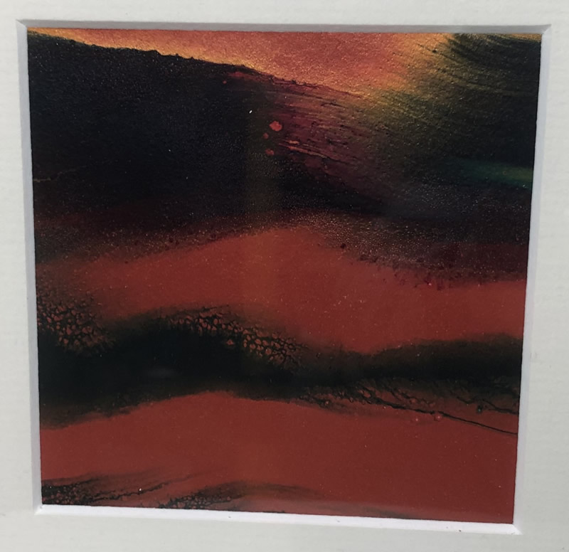Original acrilic abstract based on technique painting on glassthen printon paper by Romey Brough