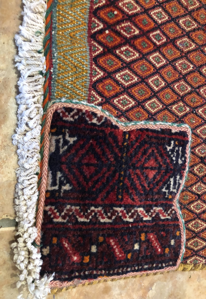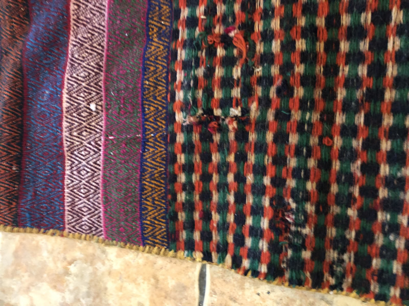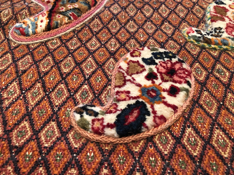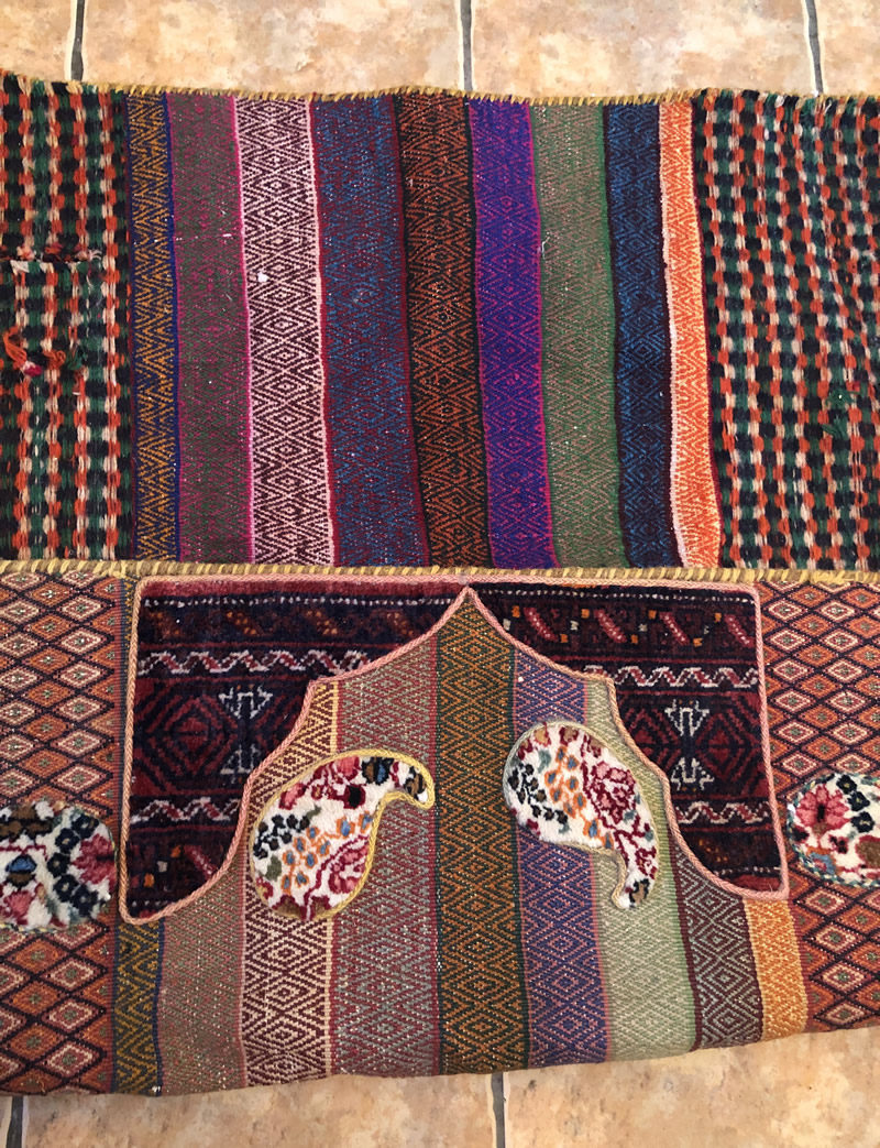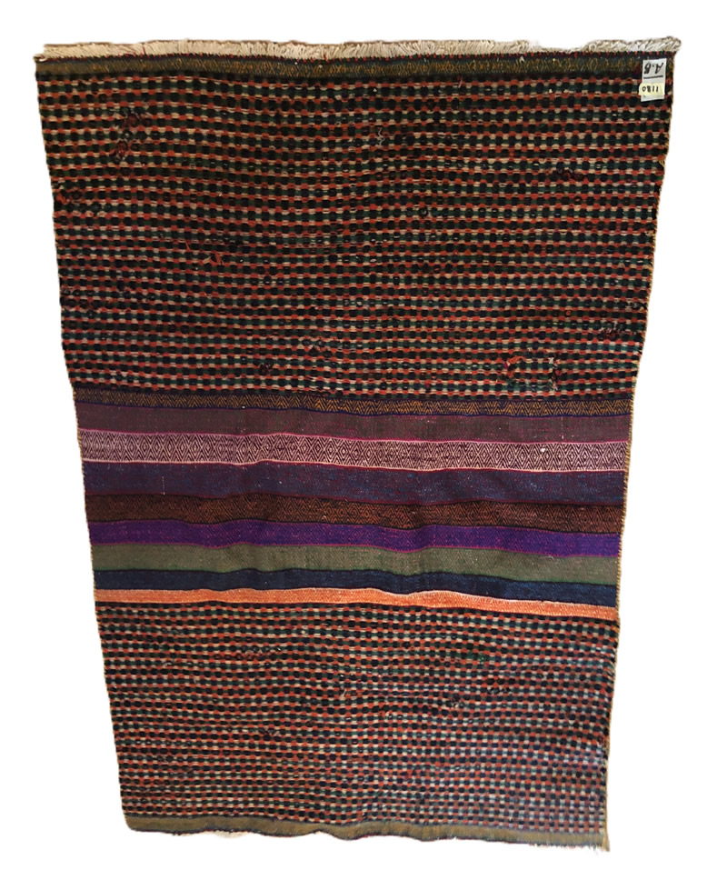 + Free delivery | UK only | Allow 5-7 daysGood condition. Short strigs (fringed) on width. Rugs with boteh jegheh (paisley pattern) and other Persian patterns attached on Suzani kilim.